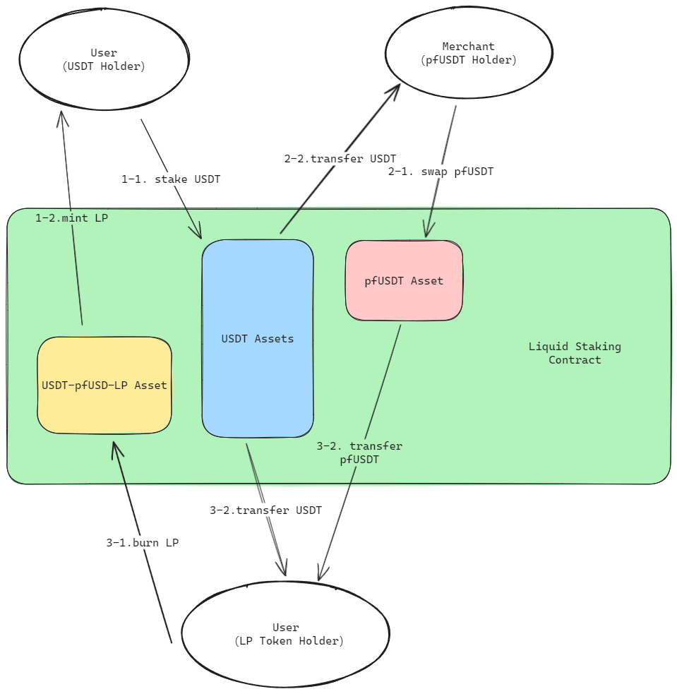 2-2. The user receives **USDT or pfUSDT** in return.